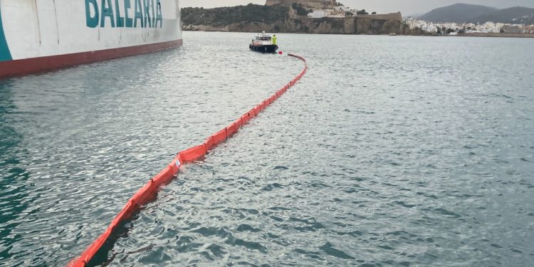 Las aguas del puerto de Ibiza han sido el escenario de un ejercicio de lucha contra la contaminación marina organizado por el Centro de Seguridad Marítima Integral Jovellanos.