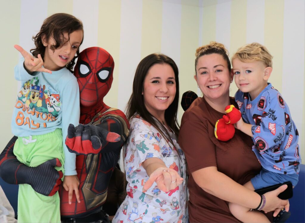 Los simpáticos superhéroes han sido recibidos entre aplausos por el personal de enfermería y médico de la planta pediátrica y una decena de niños y niñas hospitalizados, acompañados de sus familias.