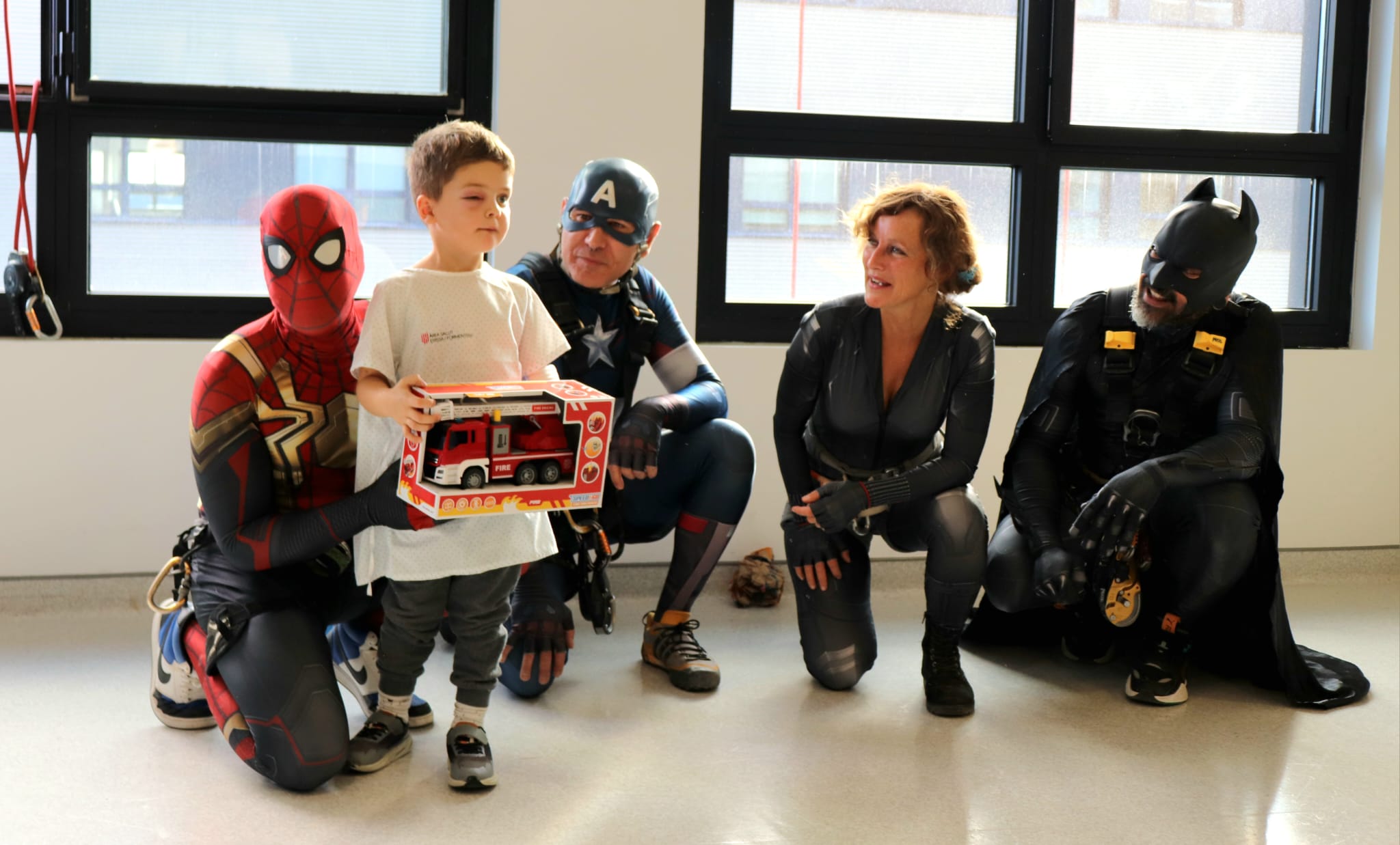 Son Spiderman, Batman, el Capitán América y la Viuda Negra quienes por cuarto año han sorprendido a los menores hospitalizados en la Unidad de Pediatría del hospital público ibicenco, no solo con su espectacular entrada descolgándose desde el tejado del hospital con arneses y cuerdas, sino con regalos para los pequeños que deben pasar estos días en el hospital.