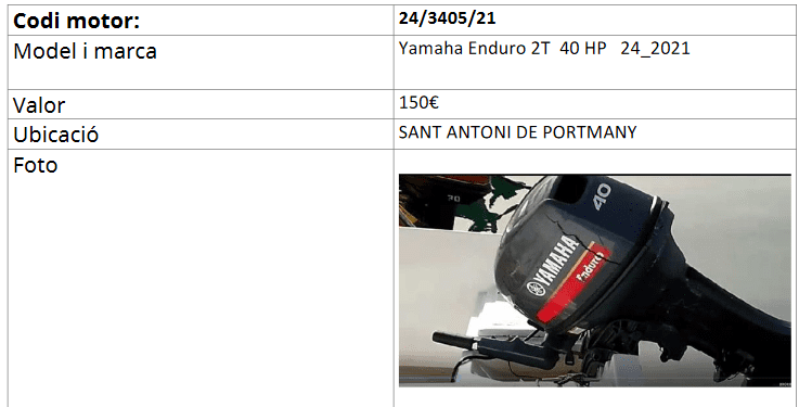 Tanto las embarcaciones como los motores y el remolque pueden ser inspeccionados si bien hay que concertar una cita enviando uno al correo electrónico a la siguiente dirección: subastas@portsib.es