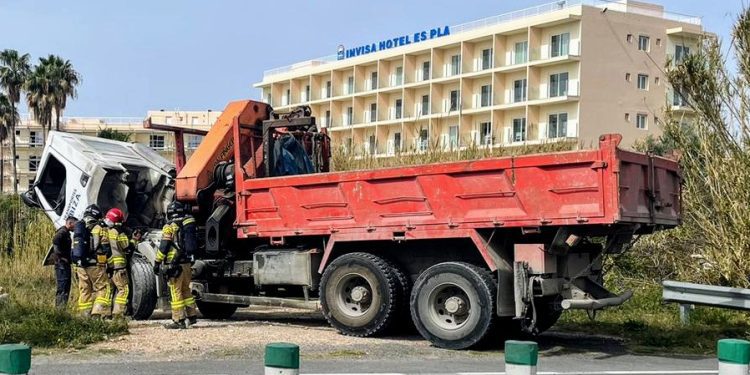 Un camión de tres ejes ha tenido que pararse junto a la carretera en Sant Antoni por un incendio en el motor. Los bomberos han recibido el aviso y han acudido a toda prisa al lugar del suceso, junto al Hotel es Pla de esta localidad, pero cuando han llegado al lugar las llamas ya habían sido extinguidas y todo ha quedado en un susto. Ahora, el camión tendrá que pasar por el taller para averiguar el motivo que ha provocado las llamas y evitar que se vuelva a producir este fallo.