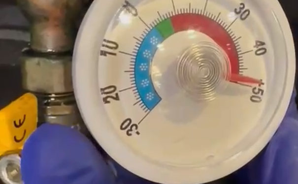 Así lo ha mostrado un cocinero de Ibiza, Rambo Viñals, en un vídeo el que el se le ve trabajando junto a un termómetro a casi 50 grados de temperatura. Un calor sofocante al lado de los fogones donde prepara arroces para los clientes del restaurante.