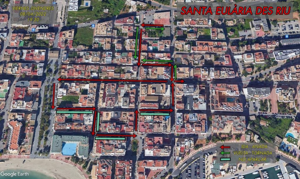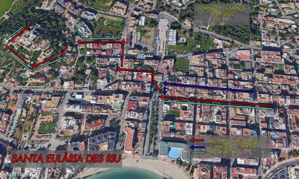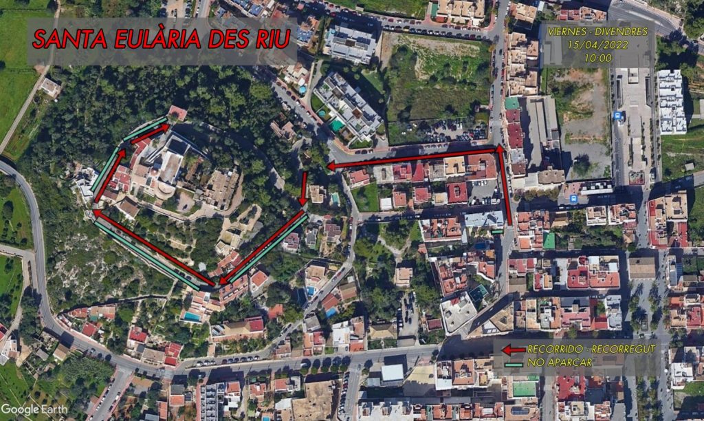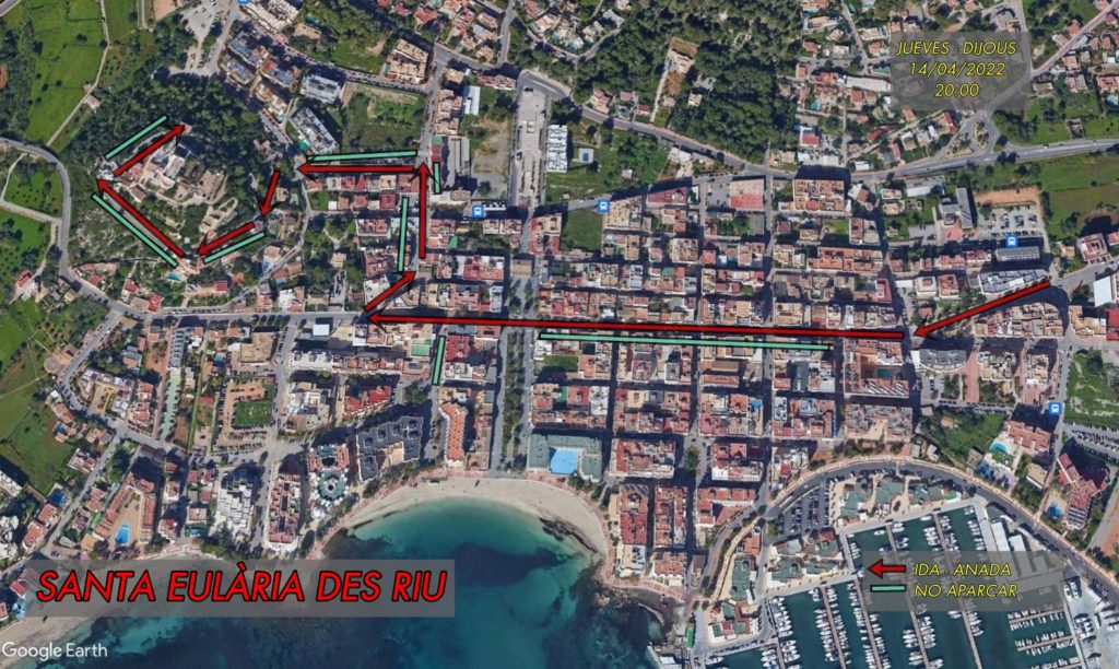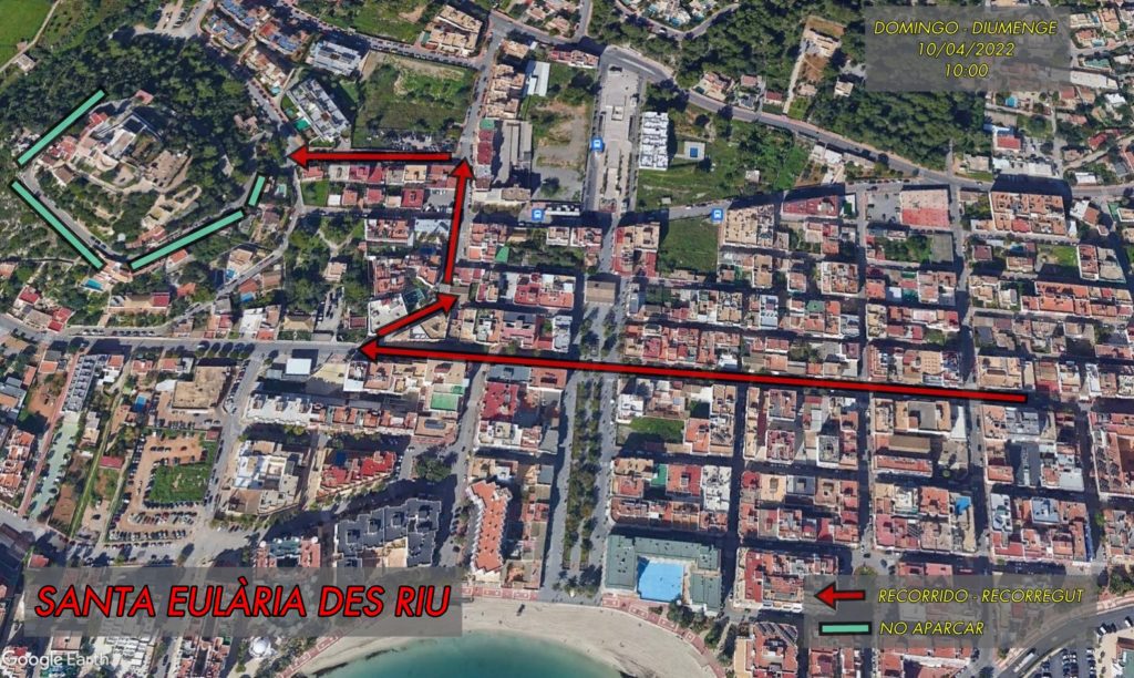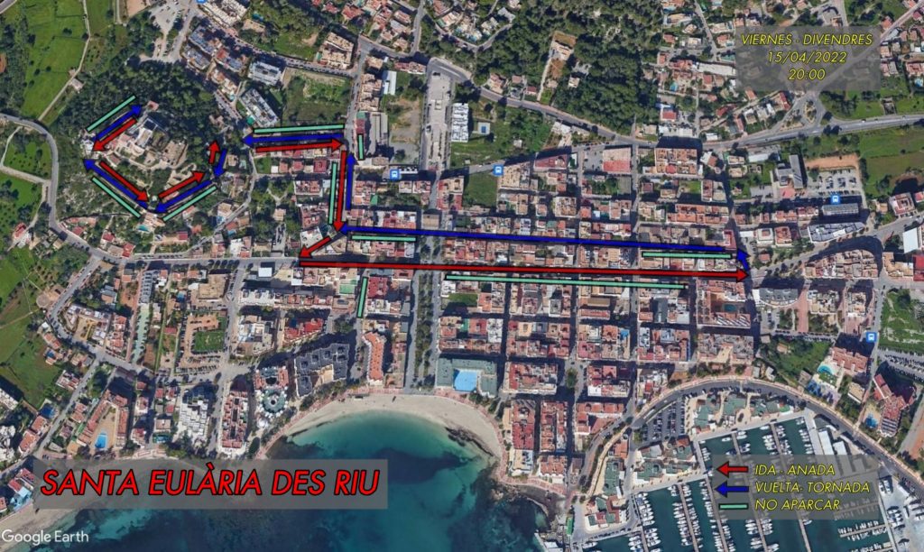 En los casos en que los recorridos son más largos o precisan de mayores medidas de seguridad por la congregación de personas, «se procederá a señalizar con antelación las zonas donde no podrán estacionarse los vehículos de forma temporal». Se trata básicamente de las procesiones que se celebran en Santa Eulària y afectan a las calles Sant Jaume, Sant Vicent, del Sol, Pintor Laureà Barrau, Padre Guasch y plaza Lepanto. En todo momento se tratará de limitar al mínimo el tiempo de ocupación de la vía y de prohibición de estacionamiento.