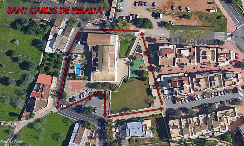 Los primeros recorridos tendrán lugar este mismo viernes, 8 de abril, con la celebración de dos procesiones del conocido como Viernes de Dolores. A las 19:30 horas en es Puig d’en Valls, habrá una procesión que, saliendo de la iglesia, transcurrirá por las calles Padre Bartolomé, de la Paz, Santiago Rusiñol y avenida es Puig d’en Valls. A la misma hora, en Santa Eulària procesionará la Cofradía de la Virgen de la Esperanza. Los costaleros saldrán desde el cruce de Camí de Missa, dirigiéndose hacia la capilla de Lourdes donde realizarán una ofrenda tras la cual seguirán el recorrido por la calle Sant Jaume hasta s’Alamera, para seguir por Sant Joan, Rodríguez de Valcárcel, del Mar, Isidor Macabich, Sant Llorenç hasta volver al punto de inicio.