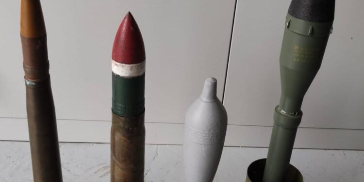 Entre el material expuesto, se hallaron 3 granadas de mano y 4 proyectiles de uso militar, sin el correspondiente certificado de inutilización que acreditase que las mismas eran inertes, motivo por el cual se pasó aviso al Grupo de Especialistas en Desactivación de Explosivos de la Guardia Civil (GEDEX).