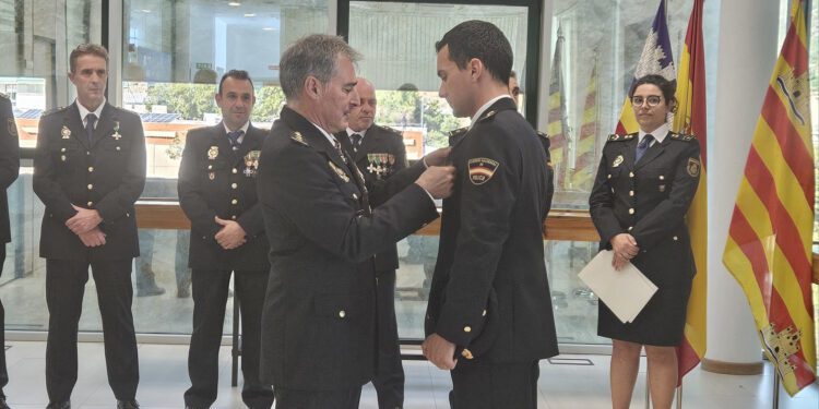 La Policía Nacional de Ibiza ha condecorado a uno de sus agentes con la Medalla al Mérito Policial con distintivo blanco, en el acto del 202 aniversario celebrado por el cuerpo policial.