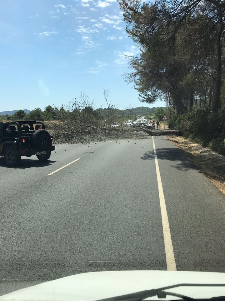 @Noudiari / Un árbol ha caído atravesando de lado a lado la carretera de Sant Joan, a la altura del kilómetro 13, lo que ha provocado el corte del tráfico este mediodía.