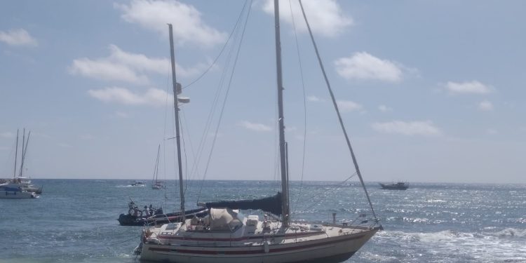 La pasada semana, a causa del temporal que azotó la isla durante varios días, otros dos barcos fueron arrastrados por el viento y las olas hasta la playa urbana de la localidad, muy cerca de donde ha encallado hoy esta embarcación.