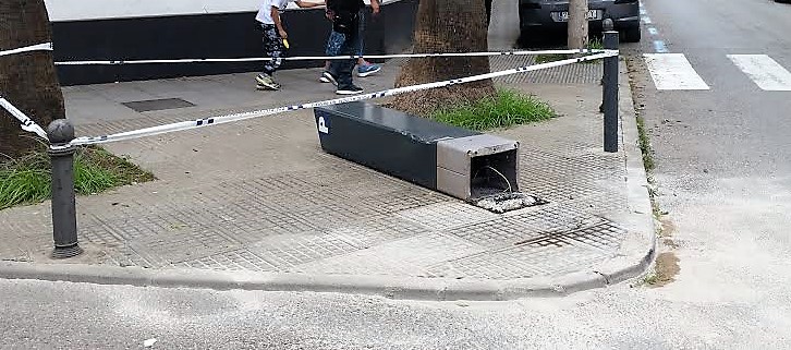 20161031_0942031@Noudiari / Dos coches han colisionado en el centro de Eivissa, concretamente en la confluencia de las calles Bisbe Huix y Aragón. El choque ha provocado que los automóviles impactaran contra un parquímetro de la zona azul, derribándolo sobre la acera como se aprecia en la imagen.