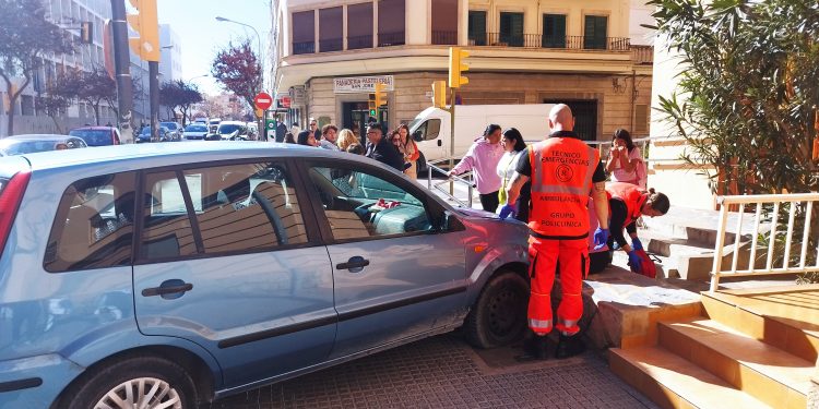 Un vehículo ha terminado sobre la acera tras colisionar con otro en la confluencia de las calles Extremadura y Avenida España del municipio de Ibiza. Según testigos presenciales, una de las dos conductoras se habría saltado el semáforo en rojo y embestido al vehículo que, tras perder el control, ha terminado sobre la zona peatonal, donde en ese momento no transitaba nadie, con lo que no ha habido heridos.
