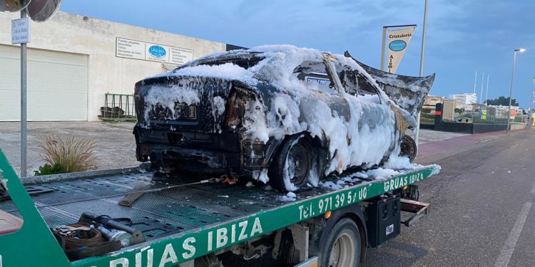 Una dotación del Parque Insular de Bomberos desplazada hasta el lugar se encargó de apagar las llamas que envolvían el coche, un Opel Astra, mientras que un equipo de Grúas Ibiza se ocupó, posteriormente, de retirarlo, como se aprecia en la imagen que acompaña estas líneas.