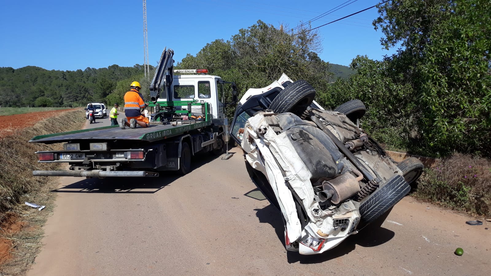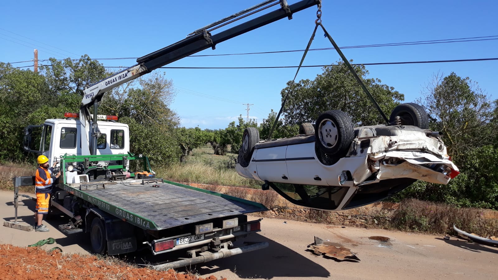 Un equipo de auxilio en carretera de Grúas Ibiza, con una grúa pluma, ha procedido a retirar el coche de la calzada.