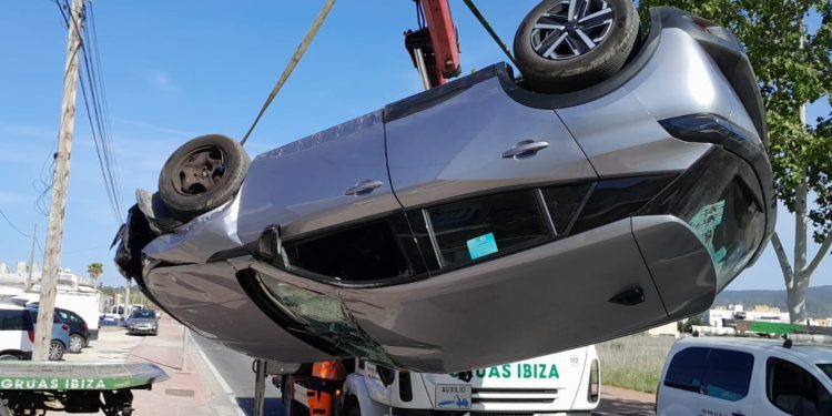 Un vehículo de alquiler ha volcado hoy, por causas que no han sido detalladas, cuando circulaba por la avenida de Portmany, en la entrada a Sant Antoni, han informado fuentes conocedoras de lo ocurrido.