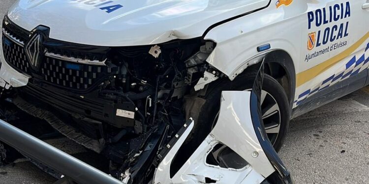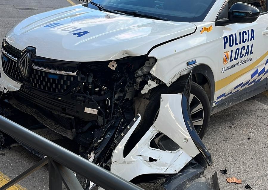 Un coche de la Policía Local de Ibiza se estrella contra las barreras del Paseo de Vara de Rey