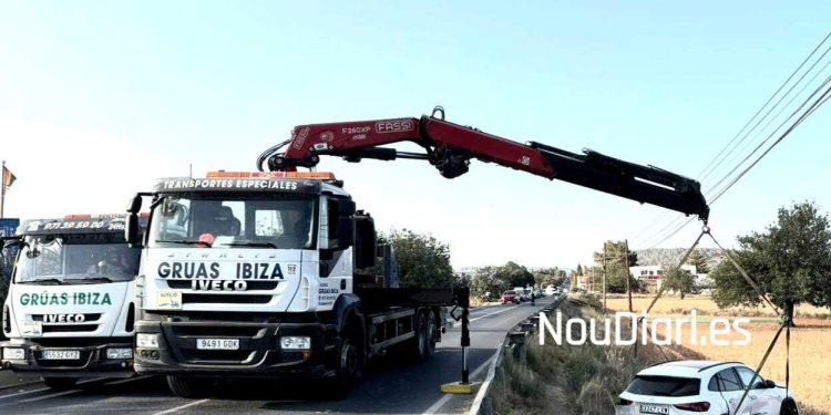 La Guardia Civil, que se ha hecho cargo de la investigación, ha tenido que regular el tráfico mientras dos equipos de auxilio en carretera de Grúas Ibiza, con una pluma de gran tonelaje, se han encargado de recuperar el coche en una laboriosa operación. El incidente ha provocado importantes retenciones en esta vía que une el pueblo de Santa Eulària con el de Sant Carles.