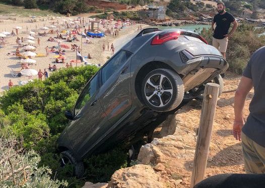 Un Audi A1 ha quedado colgado literalmente de un acantilado junto a la playa de Cala Saona en Formentera. Según publica RàdioIlla, el accidente se ha producido por motivos que se desconocen y no ha habido que lamentar daños personales.