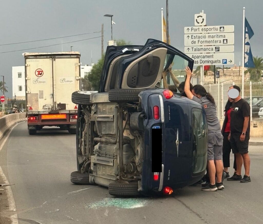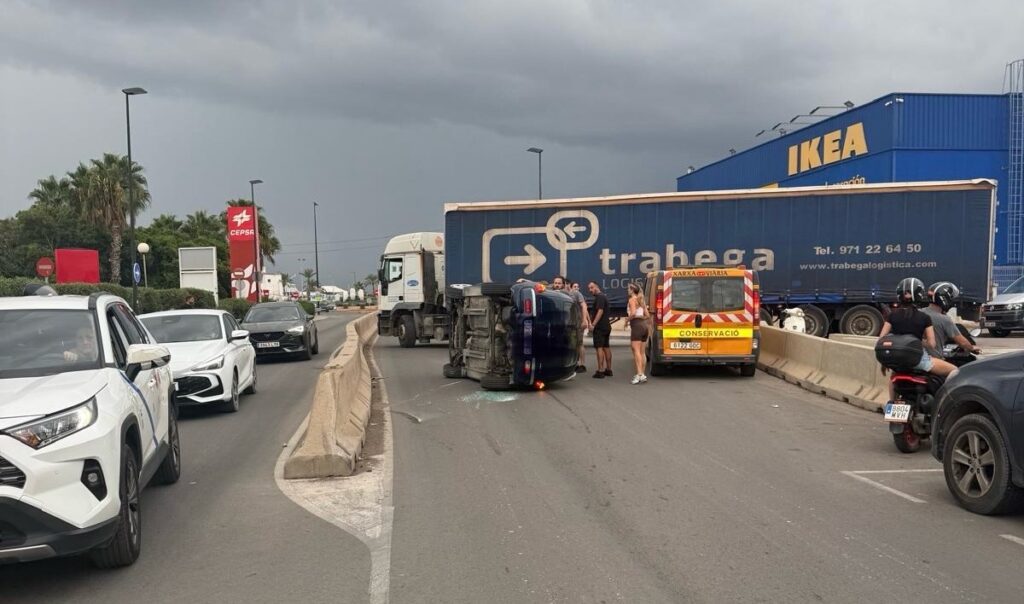 Un vehículo de la marca Chrysler ha volcado hoy por razones que se desconocen en la calle Alcalde Bartomeu Rosselló Sala, entre el Ikea y la conocida como rotonda de Pachá, en un accidente muy aparatoso que, afortunadamente, se ha saldado sin heridos de consideración.