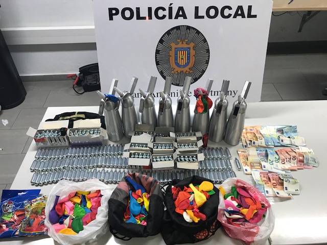 Mientras los policías realizaban un servicio uniformado por las inmediaciones de una zona de ocio del municipio, pudieron observar cómo una persona se encontraba ofreciendo globos del conocido gas de la risa (oxido nitroso) para su inhalación.