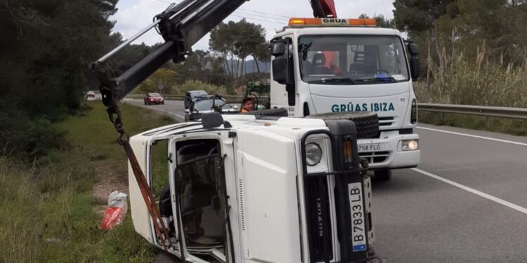 Además, dos equipos de auxilio en carretera de Grúas Ibiza ha izado izado y retirado del vehículo con una grúa pluma para restablecer la circulación.