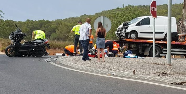 Un herido en un accidente entre una furgoneta y una moto en ca na Palava