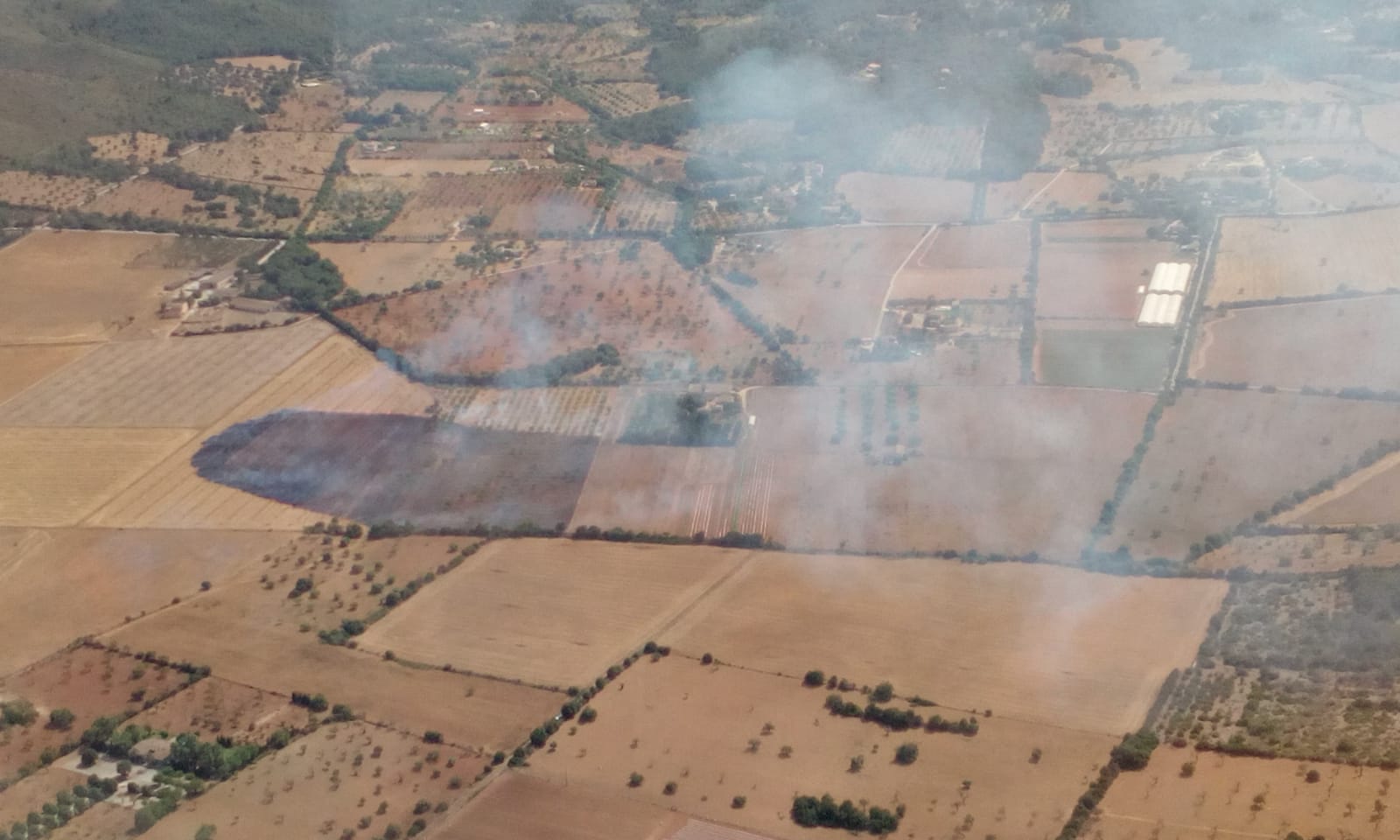 Un incendio quema unas siete hectáreas de suelo agrícola en Manacor