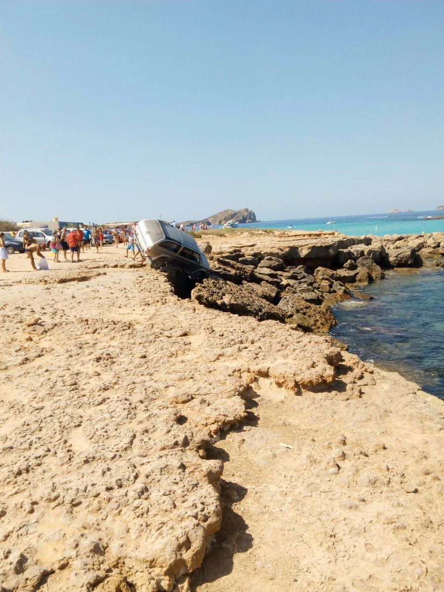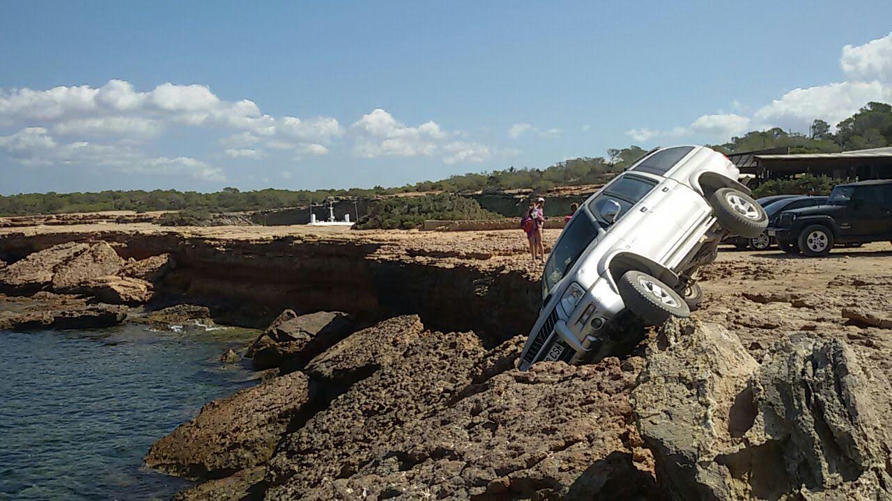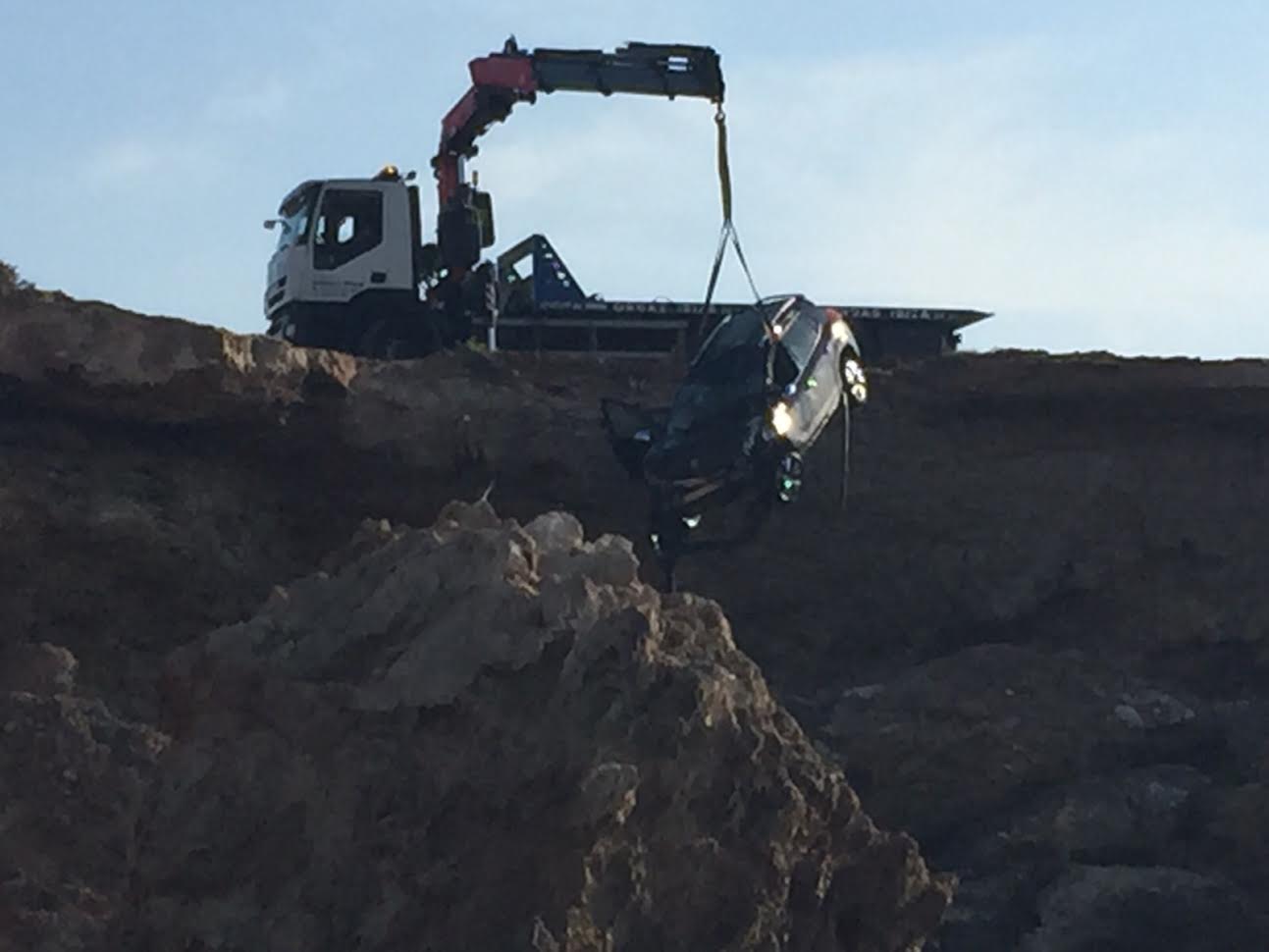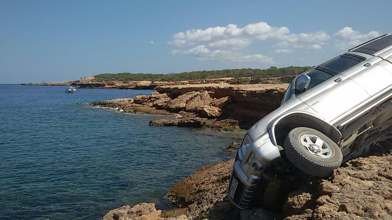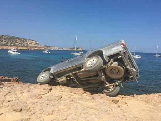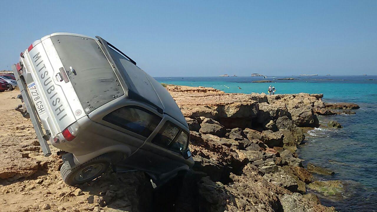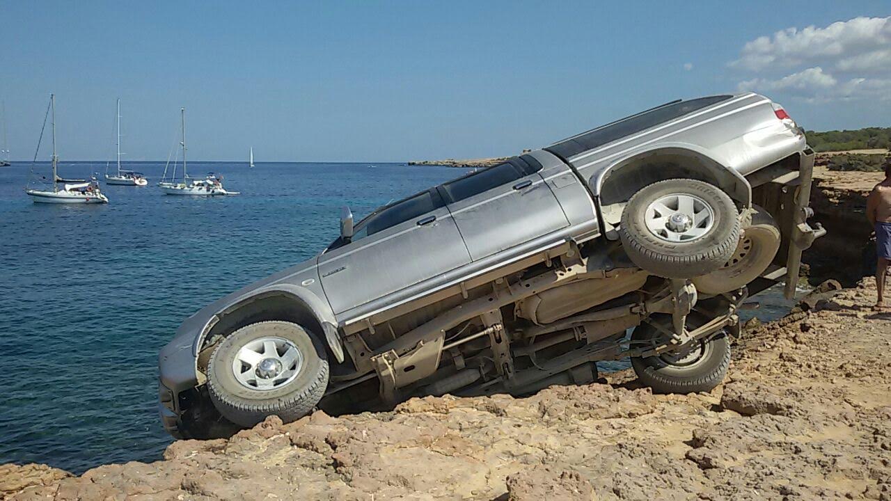 Un todoterreno queda suspendido en los acantilados de Platges de Comte