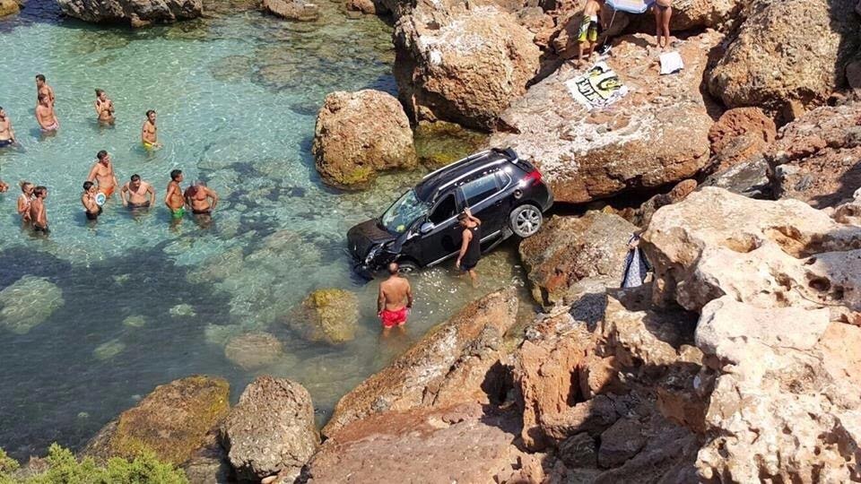 Al parecer, el propietario del vehículo olvidó poner el freno de mano y el vehículo se deslizó hasta llegar al acantilado. Numerosas personas han fotografiado la escena.