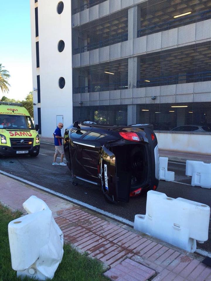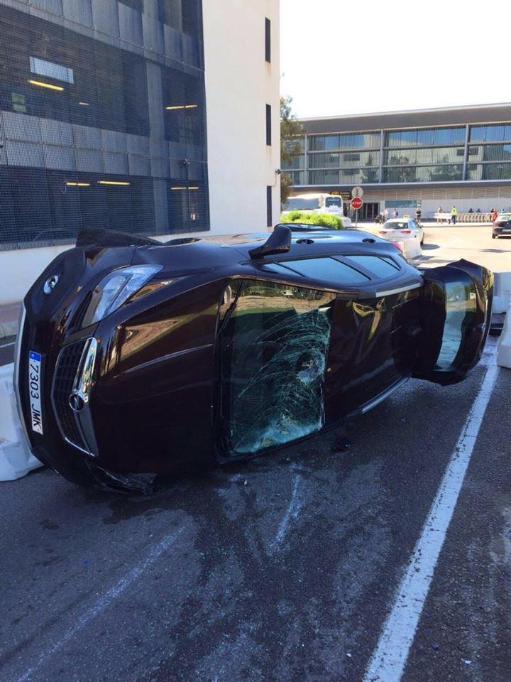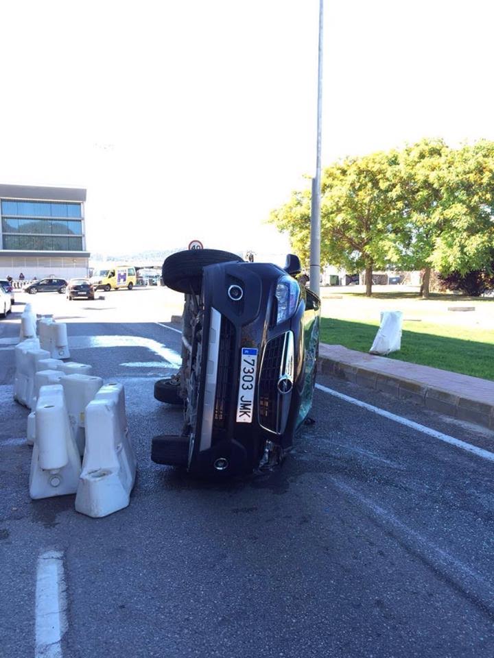@Noudiari/ Un coche ha volcado esta mañana en la entrada del aeropuerto debido, al parecer, a un exceso de velocidad.