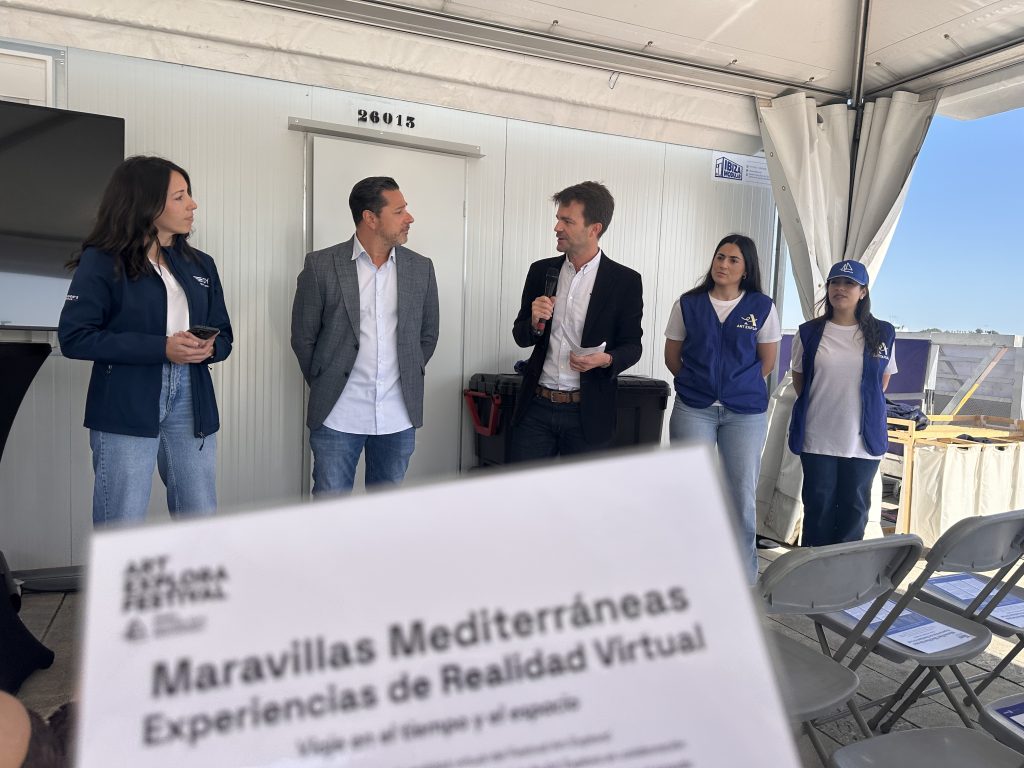 El concejal Rubén Sousa y Bruno Julliard, director general del festival, junto con representantes de IGY Ibiza Marina y del personal del festival.