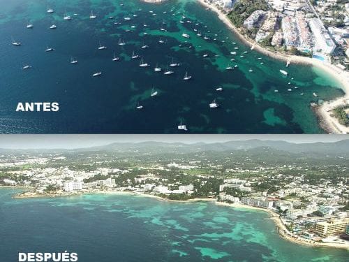 Igualmente significativa es la fotografía que muestra el antes y después de esta zona, una vez que ha quedado libre de embarcaciones fondeadas ilegalmente mediante este tipo de soportes.