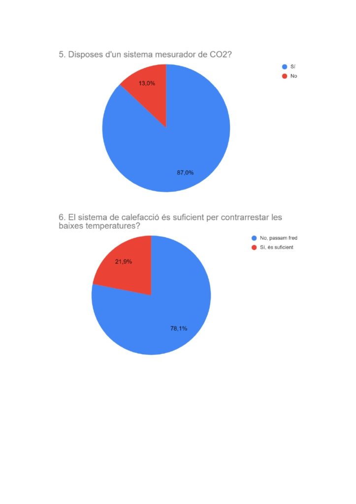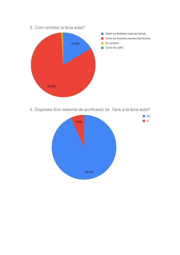Las conclusiones del estudio han demostrado que el 87% de las aulas tienen medidores de CO2 para así regular la ventilación, pero como el 93% no dispone de sistemas de purificación de aire, el 83% tienen que mantener con las ventanas abiertas de manera permanente, por lo que el 78% pasan frío a pesar de disponer de calefacción.