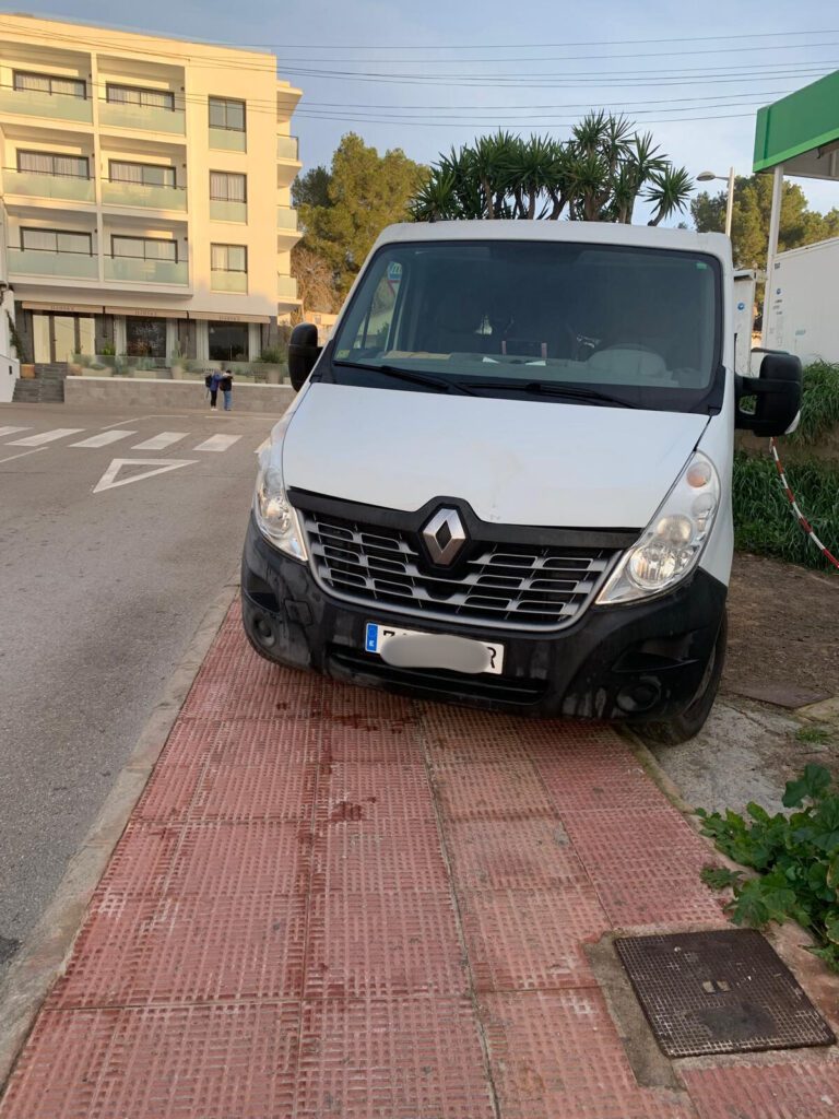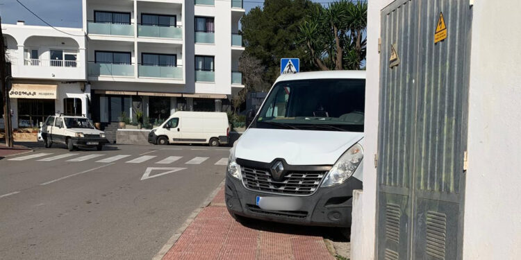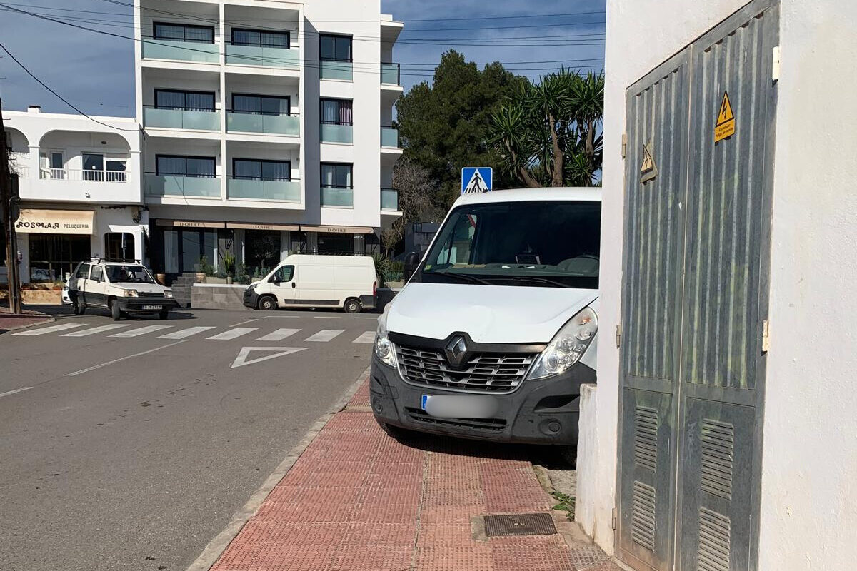 El estacionamiento indebido se dio en la calle Juan Tur Tur, perpendicular a la vía principal de Santa Eulària, la calle Sant Jaume. Justo al lado de una gasolinera, el conductor o conductora dejó la furgoneta esta mañana. Quien envía la imagen denuncia que la furgoneta ya estaba aparcada sobre la acera a las 8:45 minutos, y cuando regresó a las 12:55 el mismo vehículo seguía obstaculizando la vía por completo.