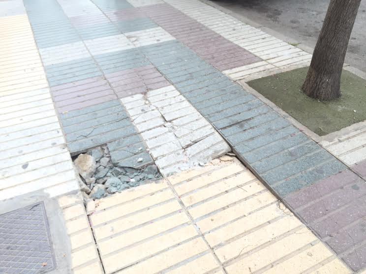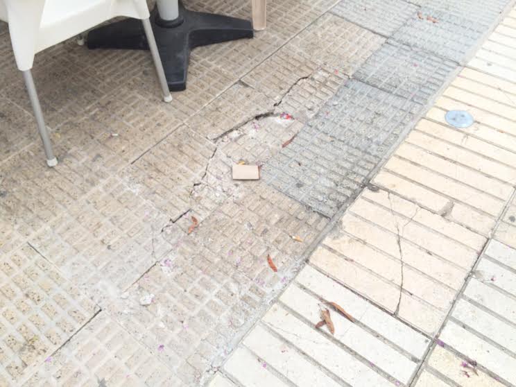 Pasar por delante daba pánico por falta de espacio, falta de señalización y riesgo de caída. Desde hace días ya se veían los agujeros en el suelo. Haber instalado la plataforma en un carril de la avenida si llegaba el brazo.