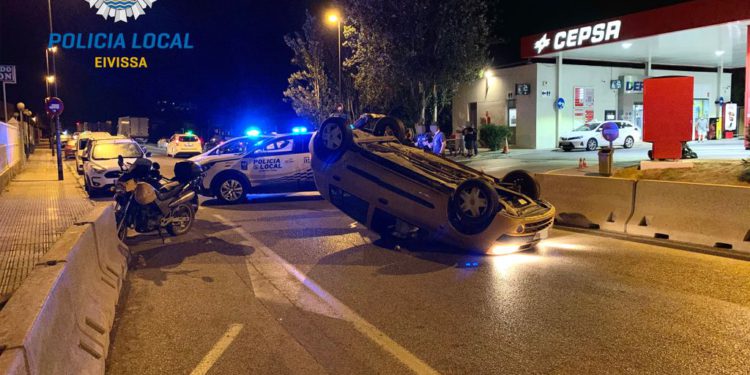 Una mujer borracha ha volcado esta pasada madrugada el coche que conducía junto a la gasolinera del barrio de es Gorg, concretamente en la calle alcalde Bartomeu Rosselló Sala de Ibiza, como se aprecia en la imagen. En las pruebas de alcoholemia practicadas después del accidente por la Policía Local, la conductora arrojó unos resultados de 0,65 mg/l y 0,66 mg/l, respectivamente, por lo que los agentes instruyeron diligencias penales y le imputaron un delito contra la seguridad viaria. La mujer resultó herida de carácter leve en el siniestro, siendo atendida por personal sanitario en el mismo lugar de los hechos.