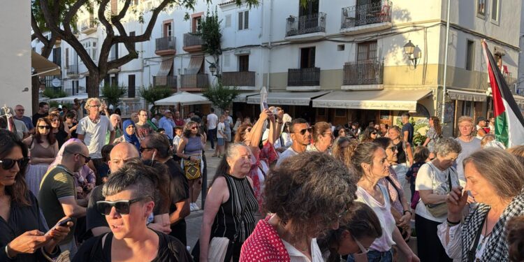 Unas 700 personas se han manifestado este sábado en el casco histórico de Ibiza para clamar por el final del “genocidio” de Israel al pueblo de Gaza, con motivo de la protesta convocada por la Plataforma de Solidaridad con el Pueblo Palestino de Ibiza.