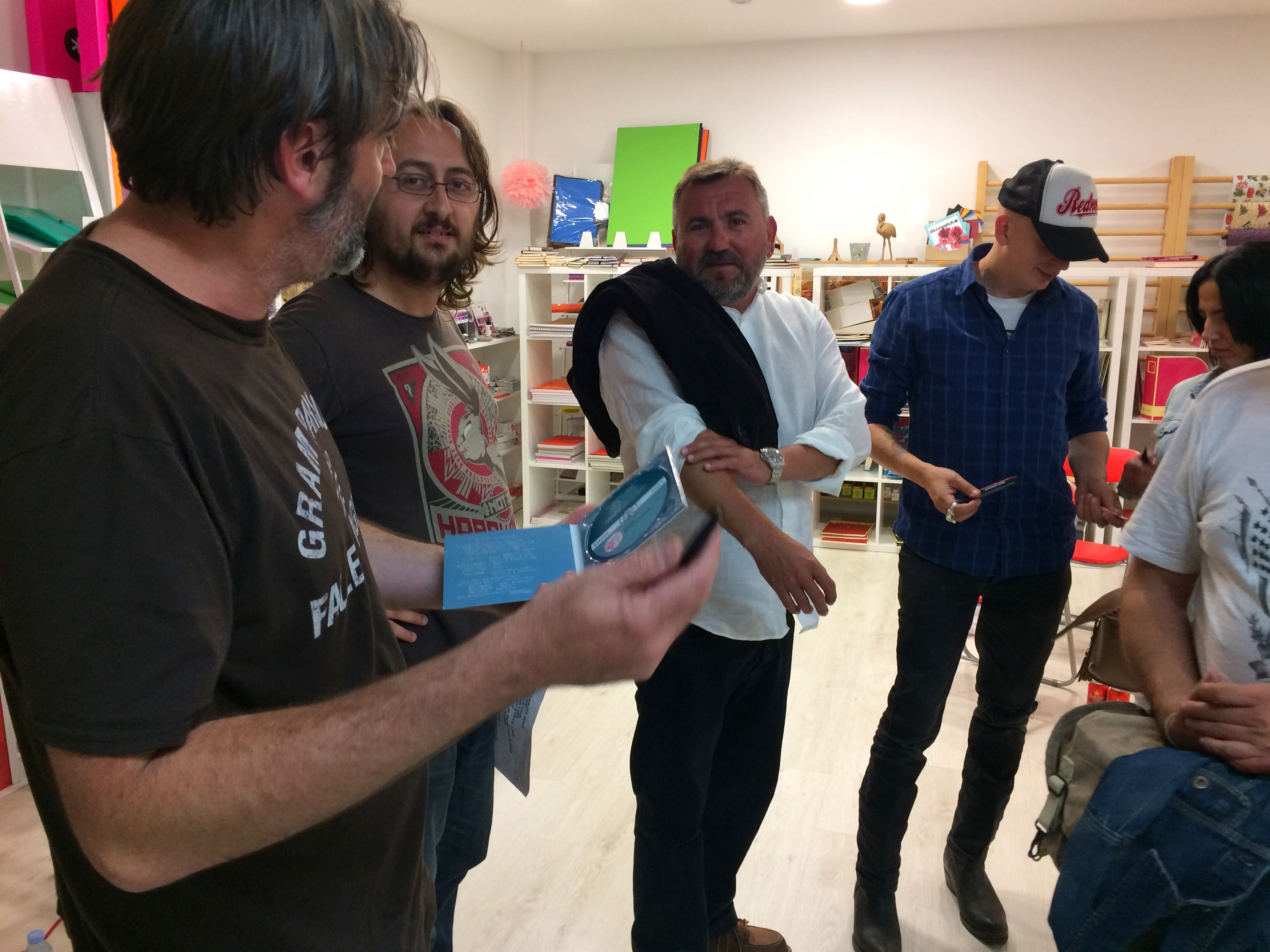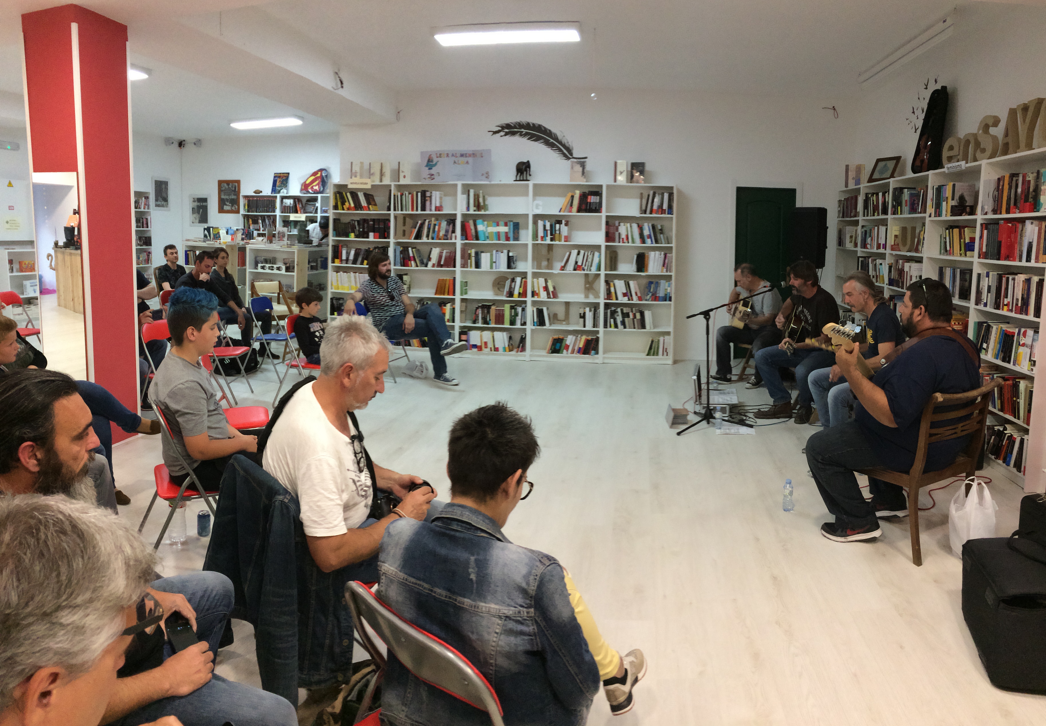La vetllada va acabar amb la banda signant alguns exemplars de You Ain’t No Bluesman, envoltada d’amics i de llibres.