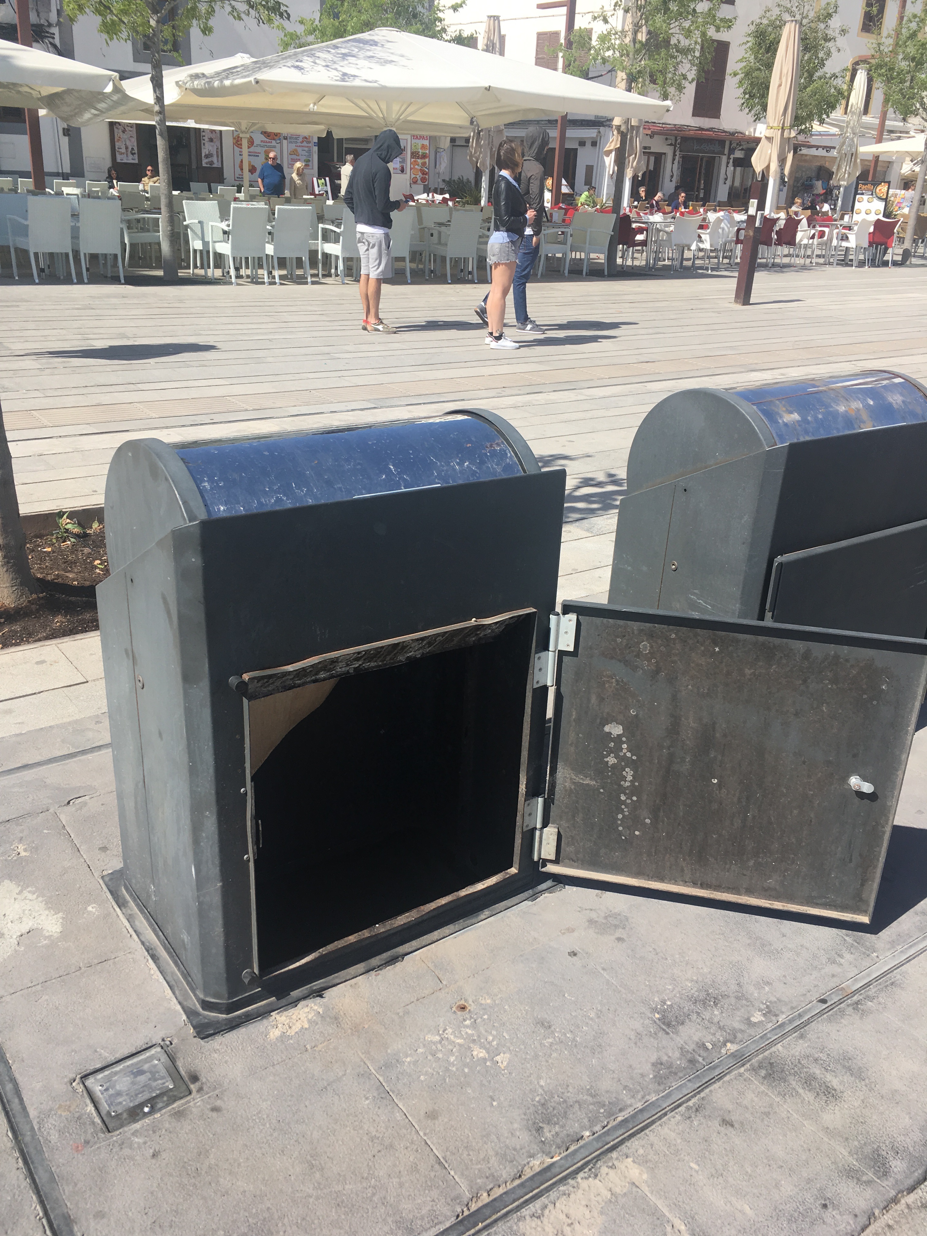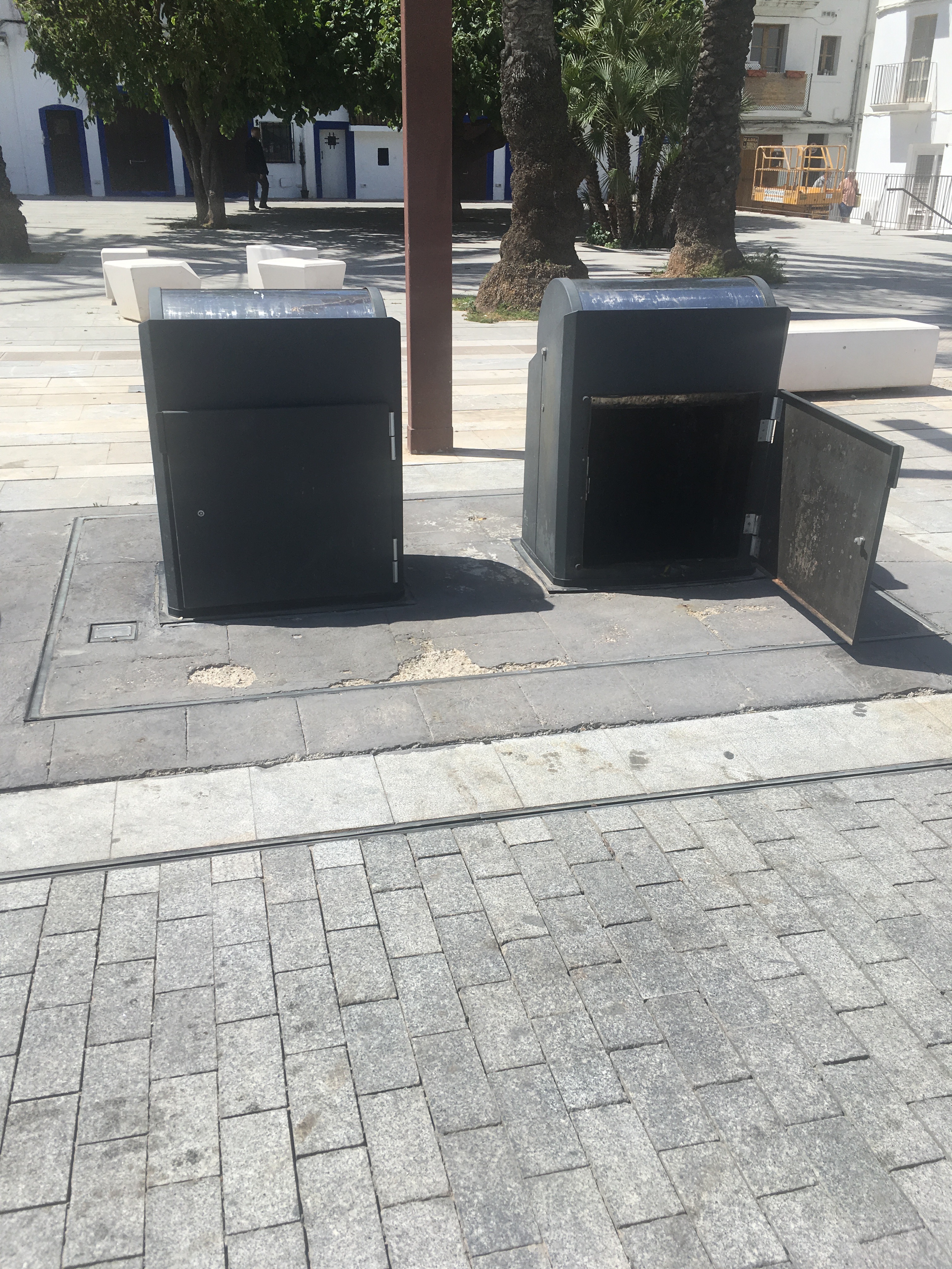 Como se puede observar en las imágenes, las puertas de estos contenedores soterrados están abiertas a plena luz del día.