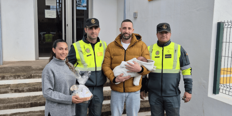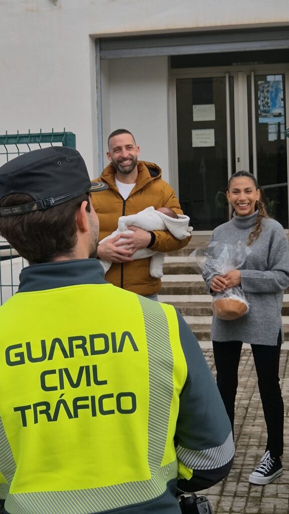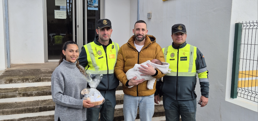 Agentes de la Agrupación de Tráfico de la Guardia Civil han conocido al bebé de la mujer a la que escoltaron de urgencia hasta el hospital cuando estaba a punto de dar a luz.