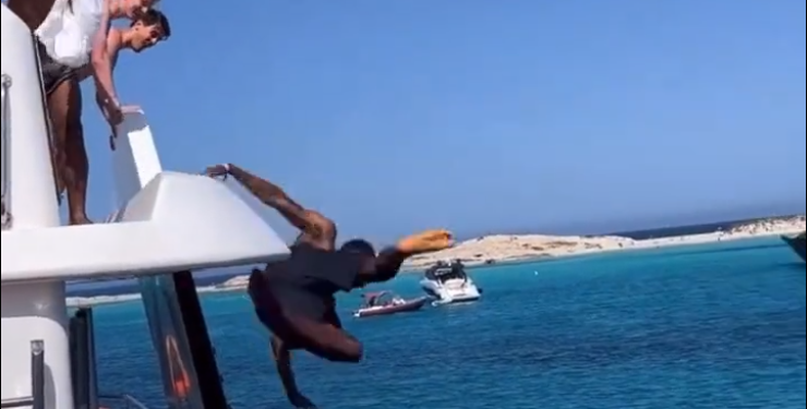 Como se puede ver en el vídeo, Mata está en un yate en la costa de Formentera, desde donde se va a lanzar al mar. Una decisión que parece que le cuesta porque la cubierta desde donde lo hace está bastante alta. Grita y aplaude coreado por sus compañeros antes del salto y les pide incluso que le den ánimos y le jaleen.