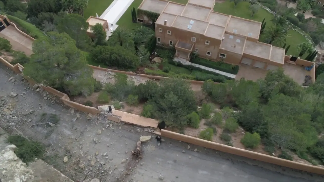 @Noudiari /Los desprendimientos de los acantilados de Es Cubells han causado destrozos en el muro de la carretera de la zona y han estado a punto de afectar a una de las lujosas casas de la urbanización, ubicada justo debajo de la vía. En el vídeo realizado por José Antonio Hervas se pueden apreciar los daños ocasionados por las grandes rocas que cayeron a causa del desmoronamiento que se produjo tras la tormenta de los últimos días.