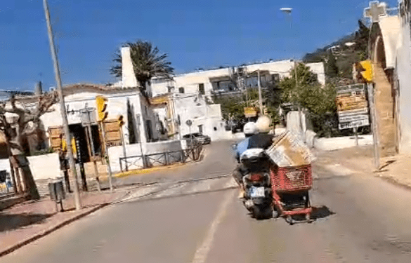 Así han circulado al menos desde Puig d’en Valls hasta Jesús, según ha podido comprobar la persona que ha grabado las imágenes, que va detrás de ellos y se sorprende con la escena. «Esto ya es el colmo, señores, el colmo. ¿Qué os parece? El nuevo remolque del siglo XXI», dice el autor del vídeo, que se pregunta dónde está la Policía, tal y como se escucha en la grabación.
