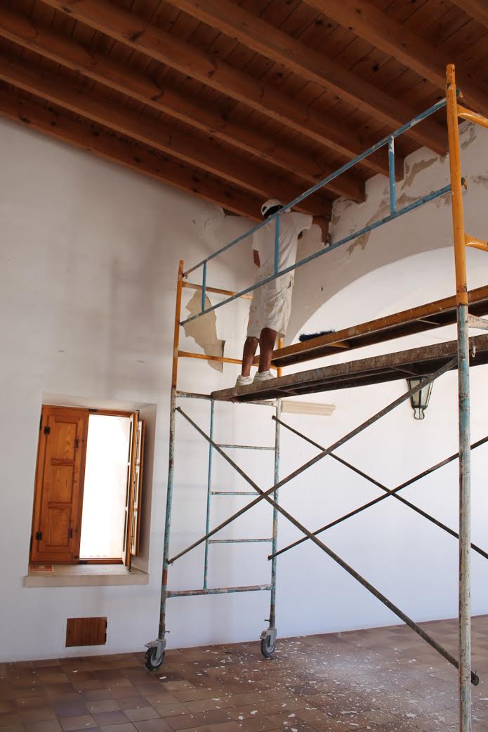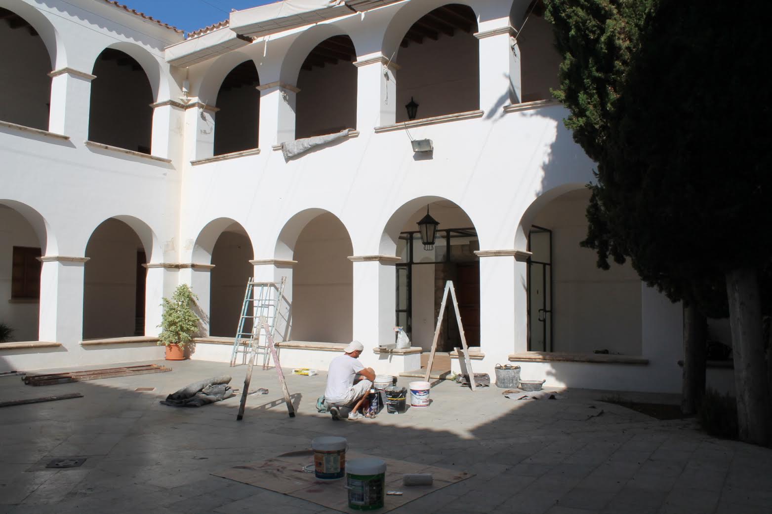 @Noudiari/ Los trabajos de mantenimiento del Claustro del Ayuntamiento de Eivissa, en la Plaça d’Espanya, se llevarán a cabo durante las dos próximas semanas. Dos operarios se encargarán de acometer las tareas encargadas, que consisten en rascar la pintura, picar las grietas y su posterior tratamiento con morteros sika o similar, un tratamiento para el salitre, imprimación y acabado con pintura plástica blanda, de la que se darán dos manos.