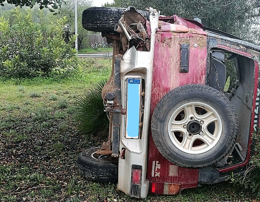 @Noudiari / Un coche ha volcado esta mañana junto a la rotonda de Amnesia en la carretera de Sant Antoni. El conductor ha perdido el control del vehículo, que ha dado una vuelta de campana en cuanto se ha salido de la vía, como se aprecia en las imágenes.