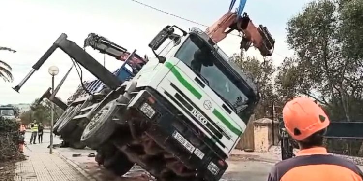 Para poner el camión de nuevo sobre sus ruedas han sido necesarios tres equipos de Grúas Ibiza y dos plumas de gran tonelaje. Antes se han tenido que retirar las palmeras para poner en vertical el camión. Se ha activado un dispositivo para desviar el tráfico y reducir al mínimo posible las molestias generadas por el accidente.