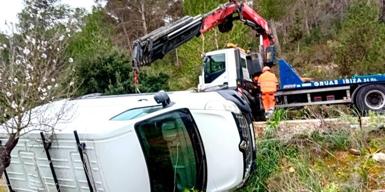 Un furgón Renault Mascott sufrió un accidente en la tarde de ayer en el camino de la cantera de Can Xumeu, en el municipio de Sant Josep, tras salirse de la vía y volcar sobre su costado derecho.