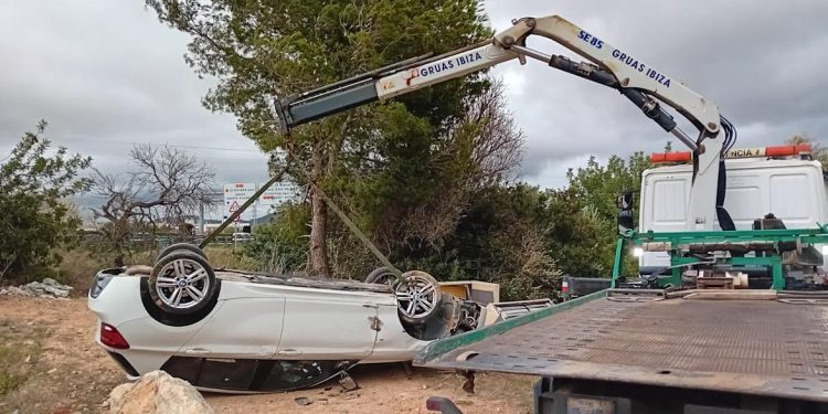Vuelca y acaba con las cuatro ruedas hacia arriba en una carretera de Ibiza