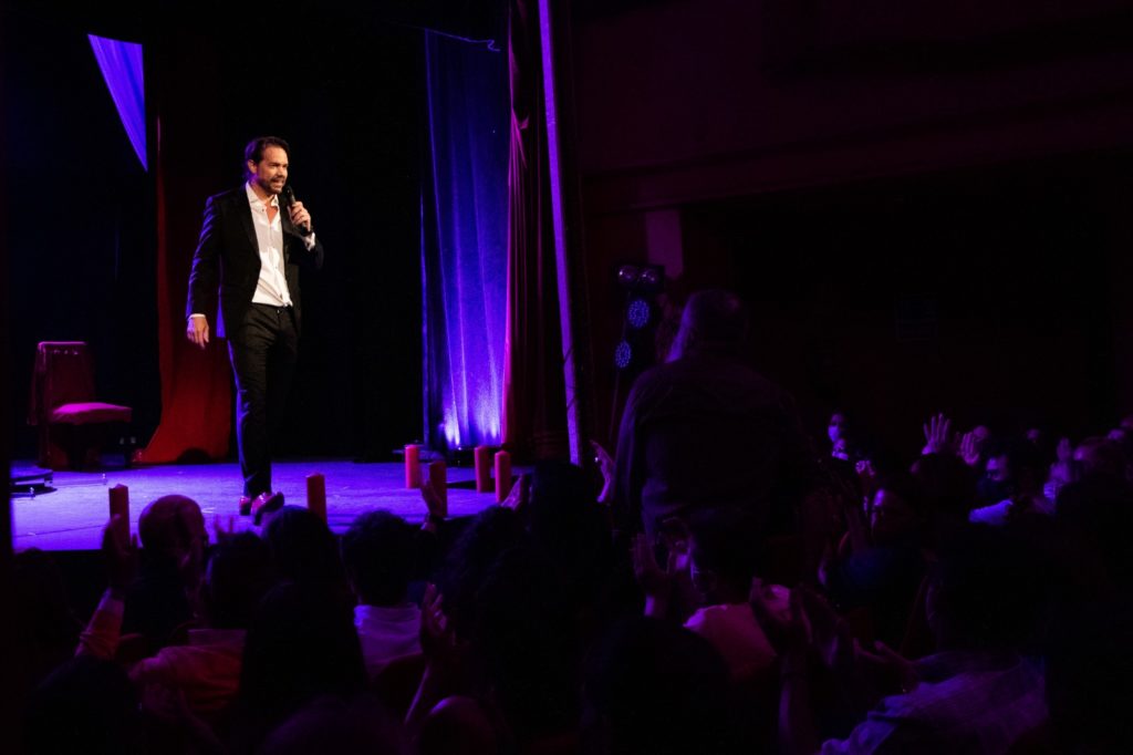 Marzo, Madrid. Hay un tipo sobre las tablas de un teatro en Madrid que te hará transitar por los siete pecados capitales como si fueran los escalones de un viacrucis creado para tu disfrute.