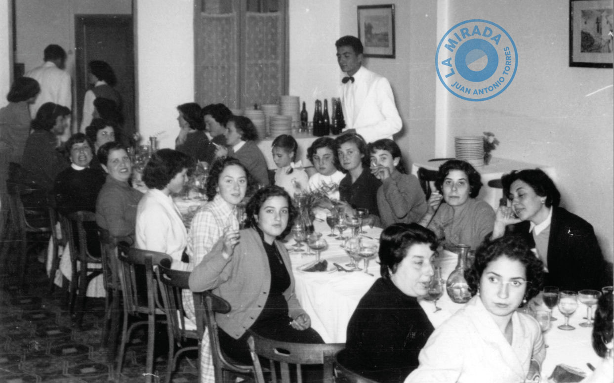 Comida de compañerismo de trabadores de la fábrica de lencería de Can Llambíes. Principio de la década de 1950. Foto V. Costa.