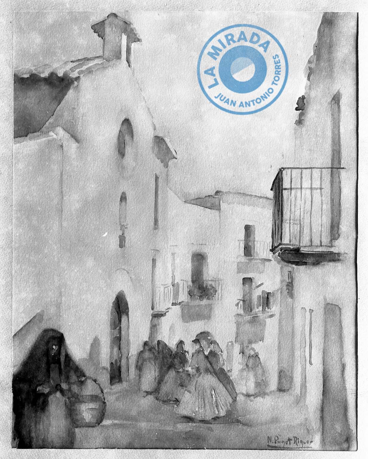 La iglesia del Hospitalet. Acuarela de Narciso Puget Riquer.
