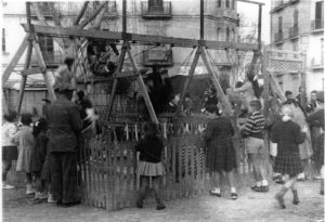 Columpio de barquitas de los feriantes en la plaza del Parque, instalada detrás de las casetas. Década de 1950. Colección Raymar.